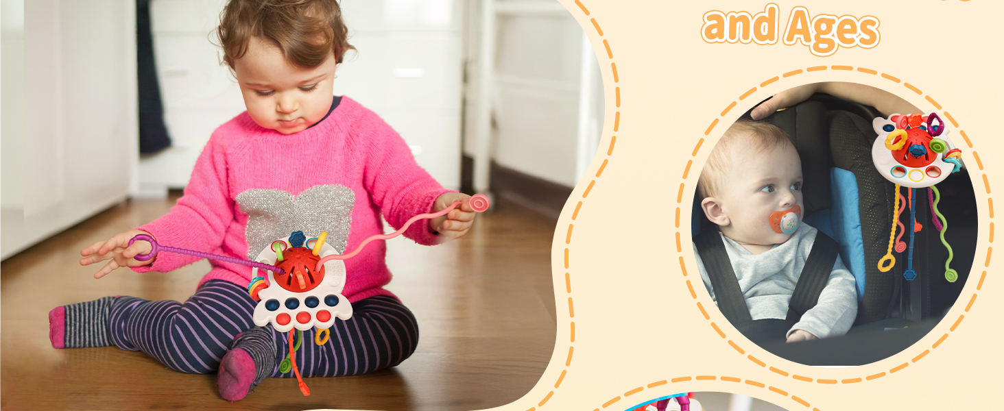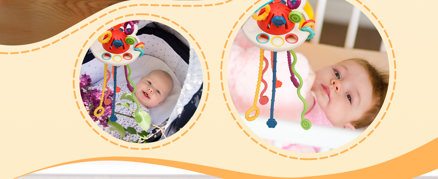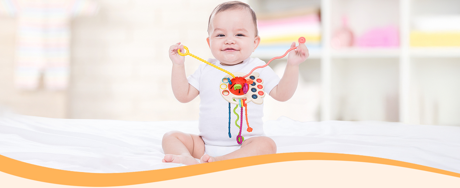 Tiyol Montessori Toys, Silicone Pull String Activitys, Developmental Pulling Baby Sensory Toy, Car Seat Airplane Travel Toddler Boy &Girl Infant Birthday Gifts 18 Months+