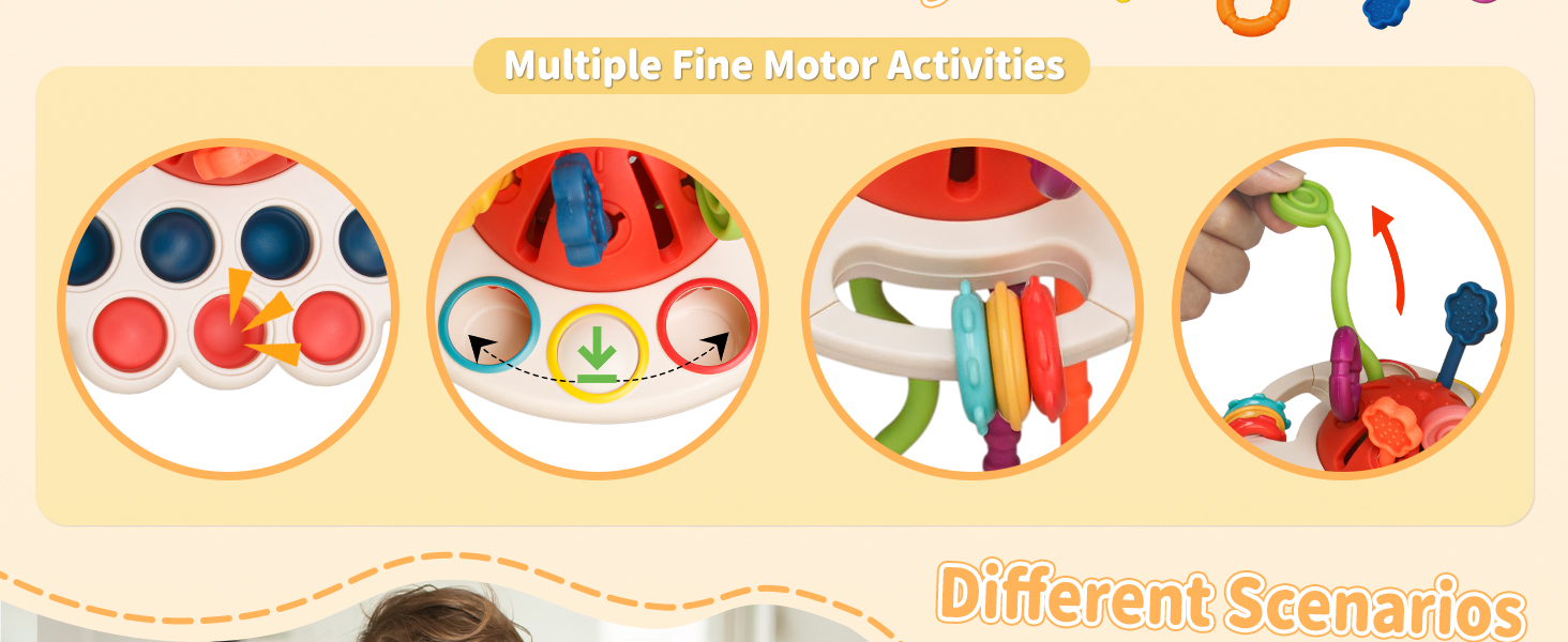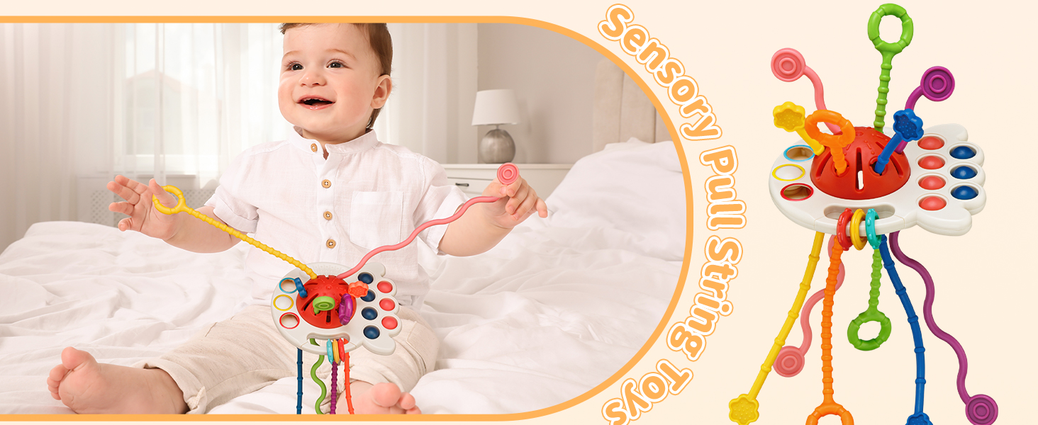 - [Multi-Sensory Toys] 6 different strings, smooth edges in shape of cute octopus… Colorful multi-sensory toys for toddlers to play with