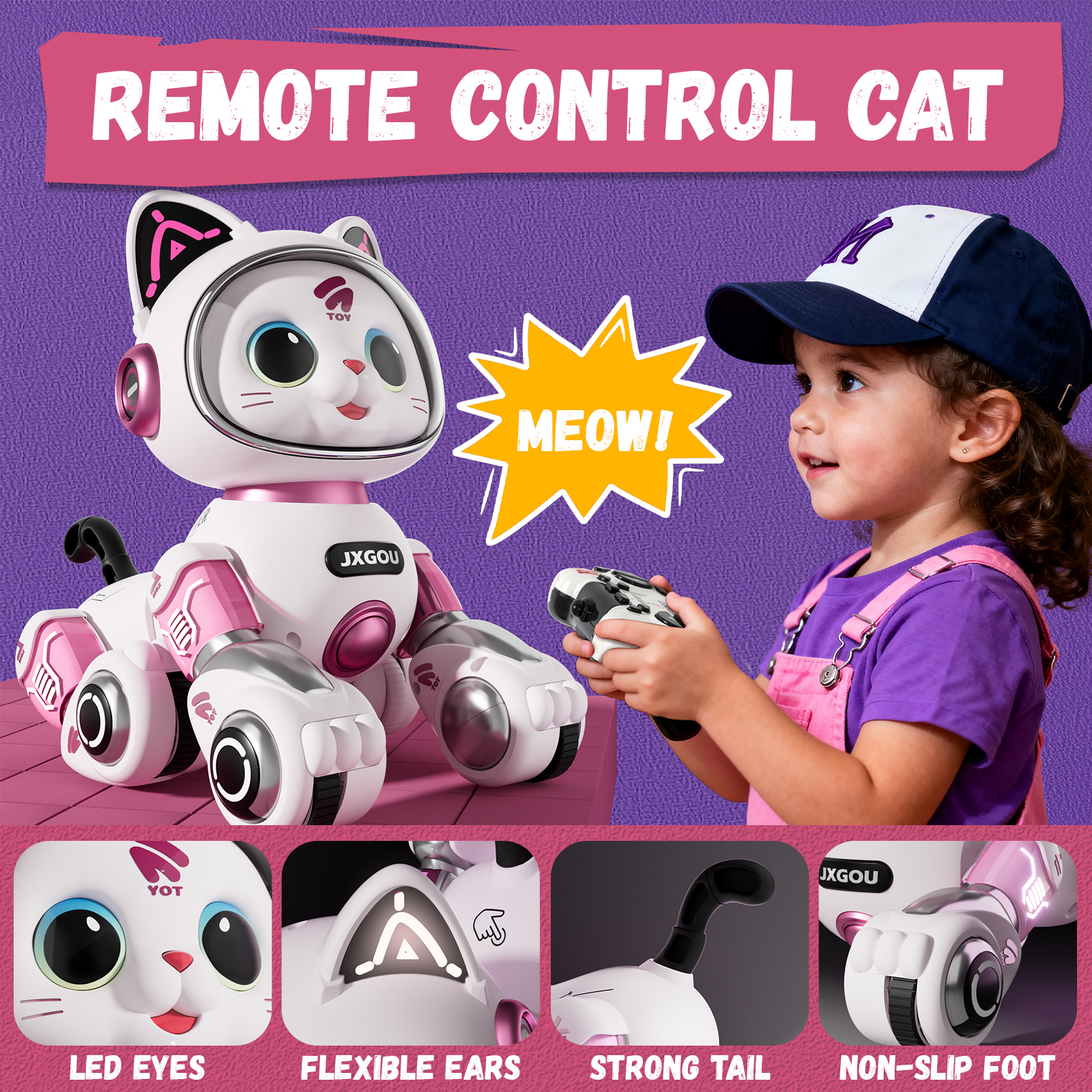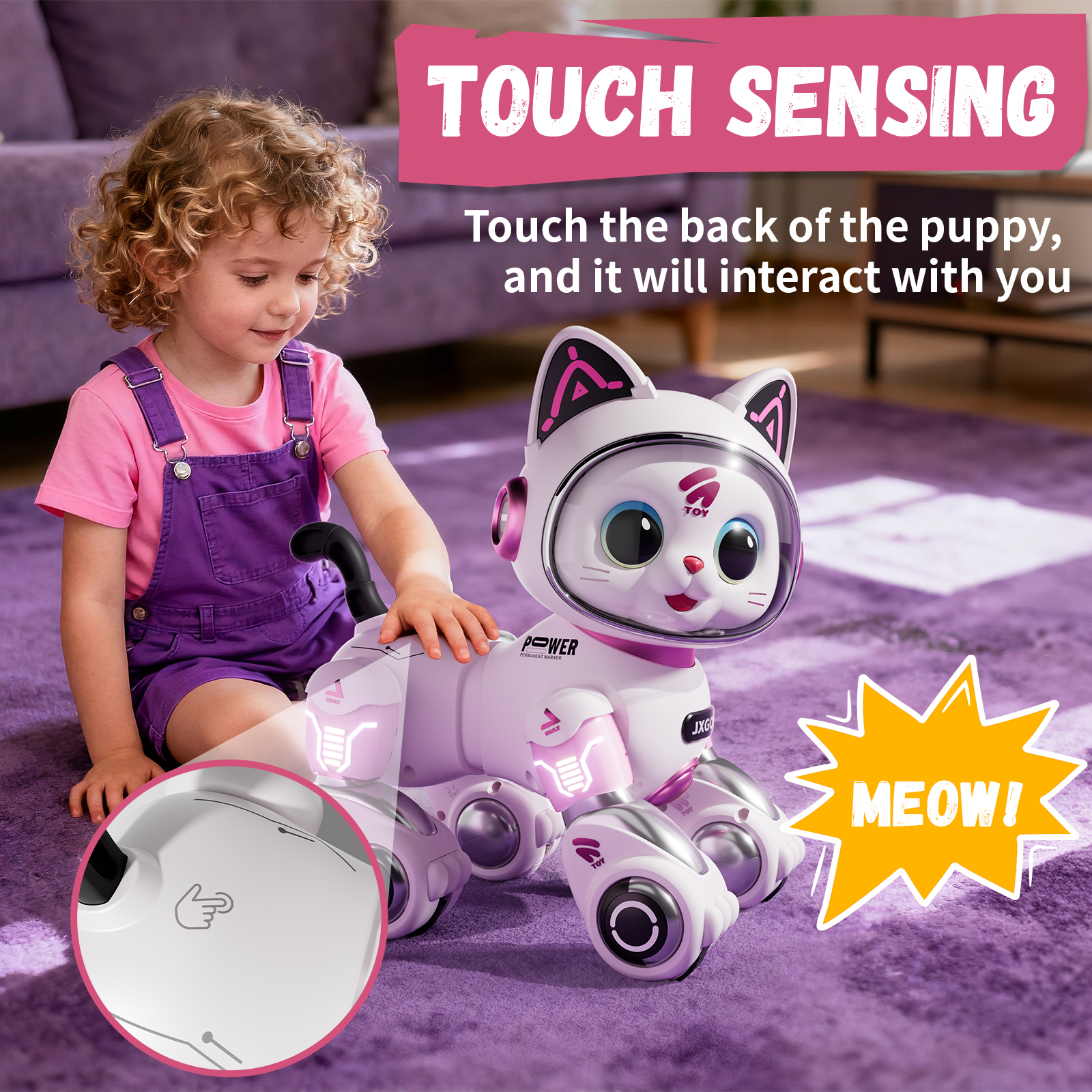 Aprilwolf RC Stunt Robot Cat Toys for Ages 8-13 with LED & Sounds, Rechargeable Interactive Remote Control Pet Puppy for 8+ Year Old Kids Girls Boys Birthday Xmas Gift, Dancing, Walking & Touch Sensing