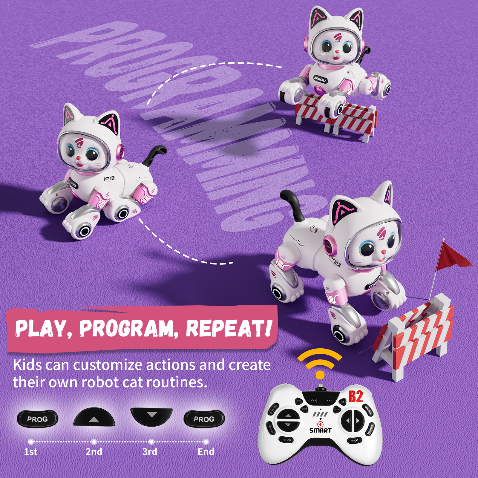 【Learn while Playing】RC robot cat toy can perform various actions, including moving forward, dancing, doing handstands & sitting. Children can freely use their imagination to customize the sequence of the robot cat’s movements, creating unique behavioral programs. This allows them to learn programming logic effortlessly through play