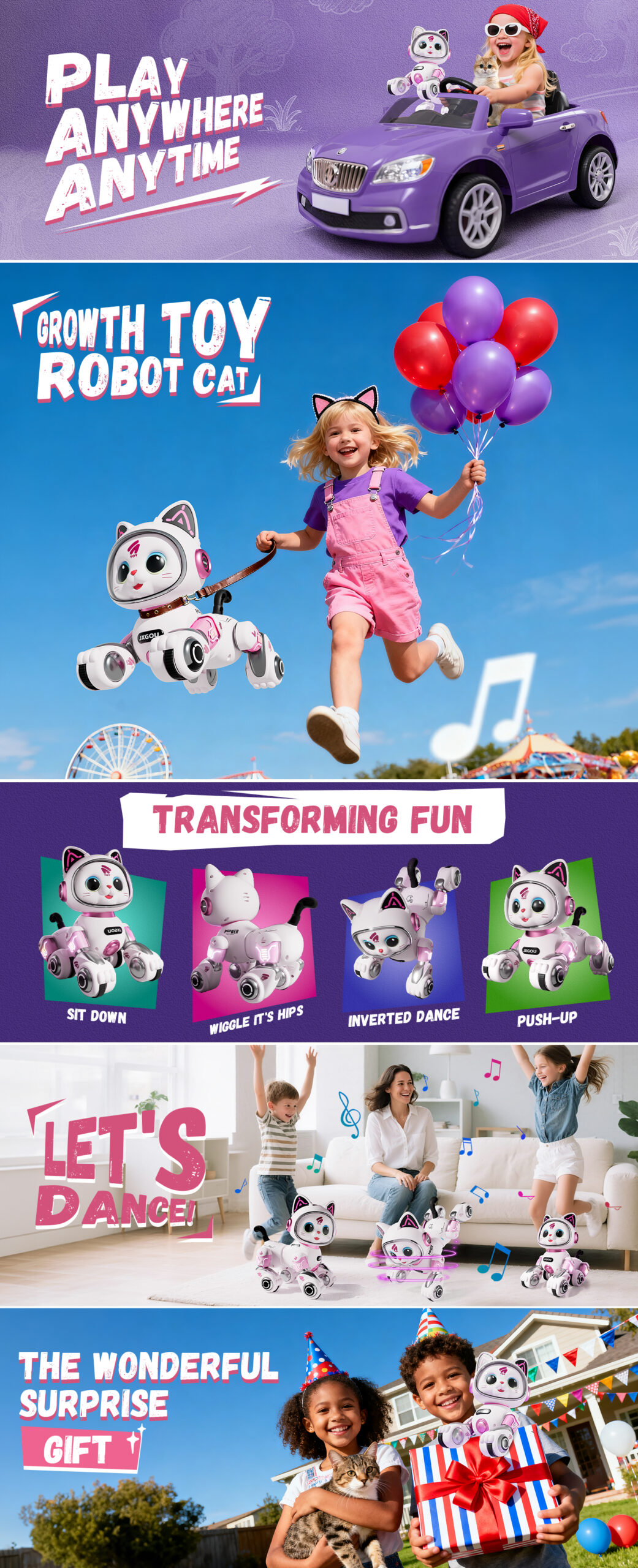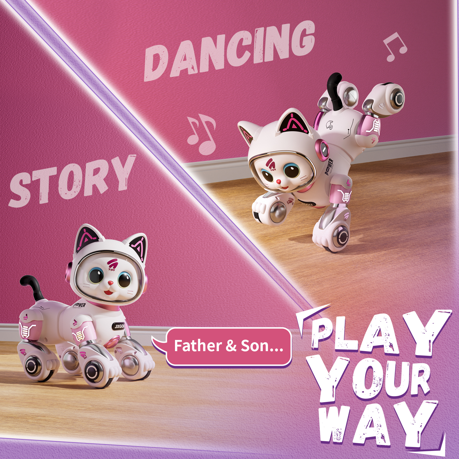 【Cool Sound & Light】Built-in dynamic music, cool lighting effects and a story playback function add to the fun. The flexible joints of the robot cat ensure it can perform various actions & dances smoothly to the rhythm of the music