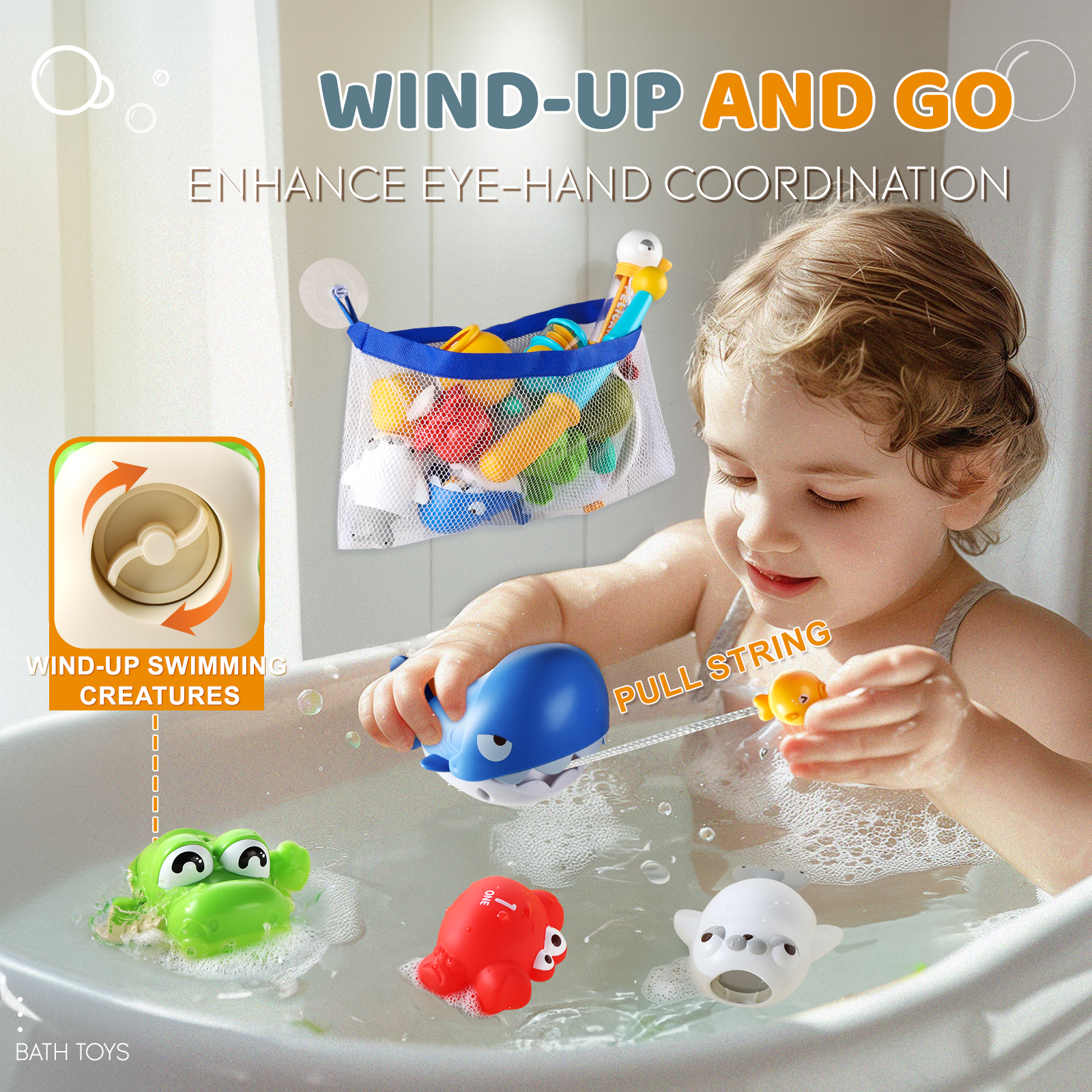 Bath Toys for Kids Ages 1-3, Magnetic Fishing Toys with Storage Bag and Light up Star, Wind up Creatures Baby Bathtub Birthday Gifts for Toddlers 2-4 Boys Girls, 11 Pcs Set