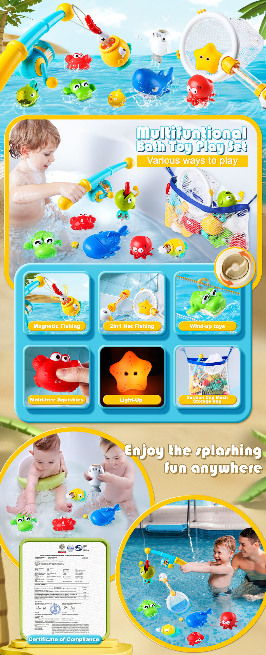 - [Play in Anywhere] These fishing toys is great for indoor or outdoor. You can play it in bathtub or pool. Suitable for Kids ages 18 months and up.