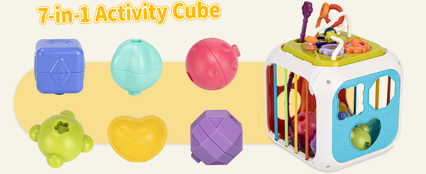 Montessori Toys for Toddlers 1 Years, 7-in-1 Activity Cube, Shape Sorter Toy| Baby Developmental Learning Toys| One Year Old First Birthday Gifts